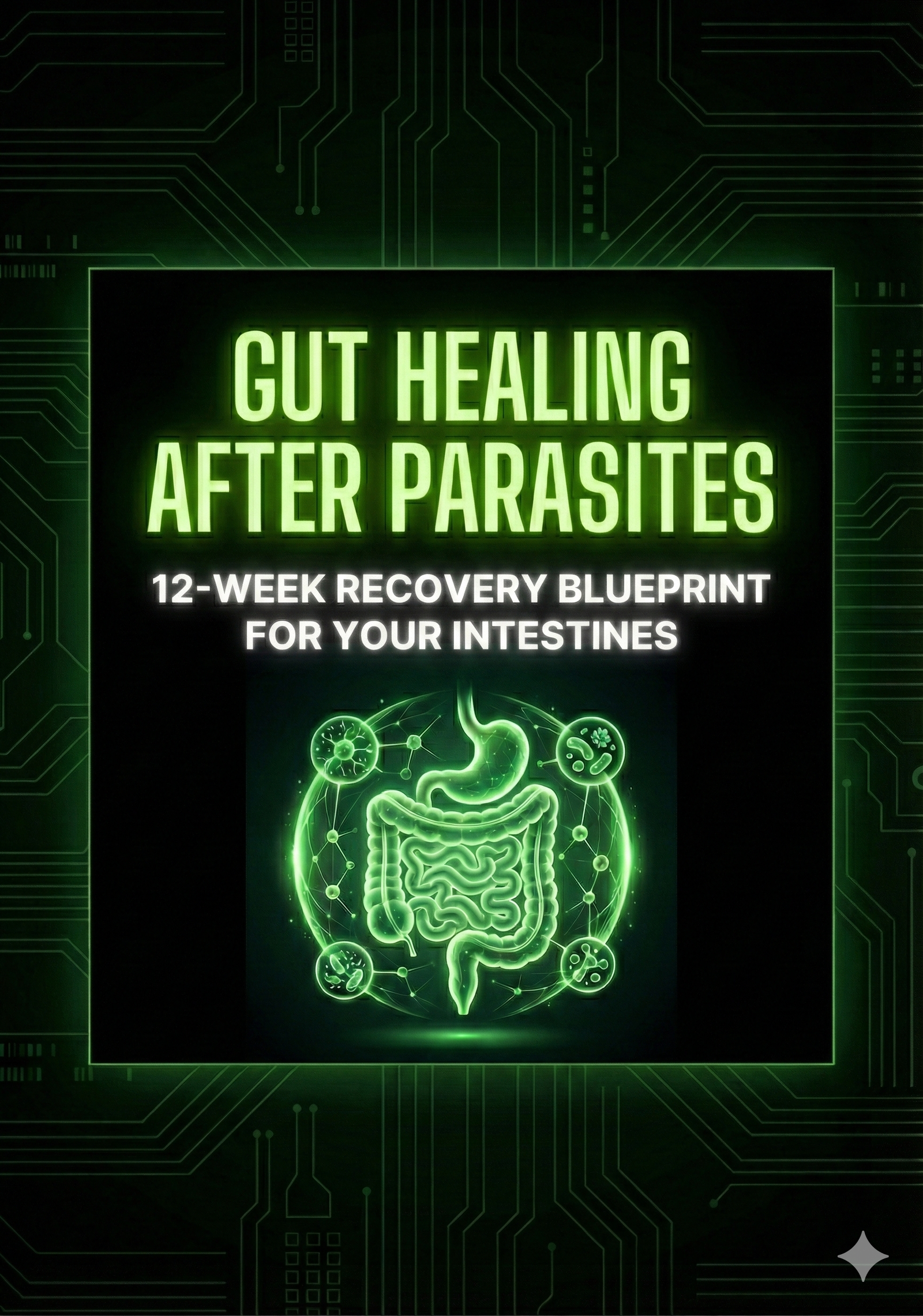 Gut Healing After Parasites is a structured 12-week recovery protocol designed for people who want a calm, practical plan after a parasite episode or anti-parasite treatment. It focuses on digestive stability, gut barrier support, microbiome rebuilding, and symptom tracking—without hype or extreme cleanses.